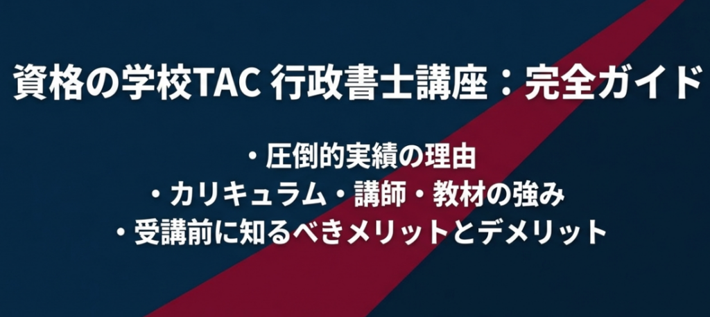 結論からお伝えすると、TACの行政書士講座は「安さ」よりも「合格の確実性」を最優先したい方に最も適した予備校です 。2023年度の合格率は56.4%と全国平均の約4倍という驚異的な実績を誇っており 、約20万円という決して安くない受講料を支払ってでも「... -