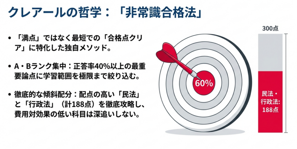 結論として、配点の高い科目にリソースを集中させるクレアールの戦略は、最も効率的に合格圏内へ到達できる方法と言えます 。