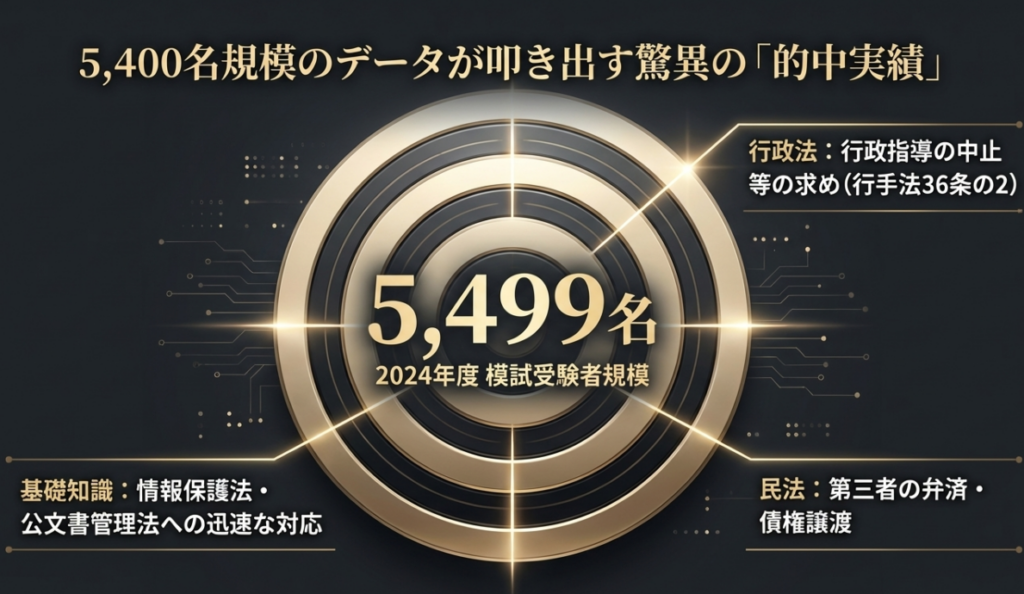 LECの模試は、毎年の本試験における的中実績の高さから、全国の受験生の間で「外せない必須アイテム」として絶大な信頼を得ています。特に全日本行政書士公開模試は、記述対策を含めた出題予想の精度が極めて高く、多くの合格実績を支える強力な柱となっています。本試験に近い難易度とボリュームで演習を積めるため、他校の通信講座を利用している受験生であっても、LECの模試だけは会場受験で雰囲気を味わうために申し込むというケースが後を絶ちません。