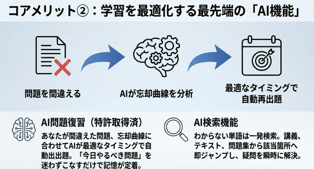 • 自動化のメリット:次に何を勉強すべきか迷う時間をゼロにし、最短ルートで合格を目指せます 。